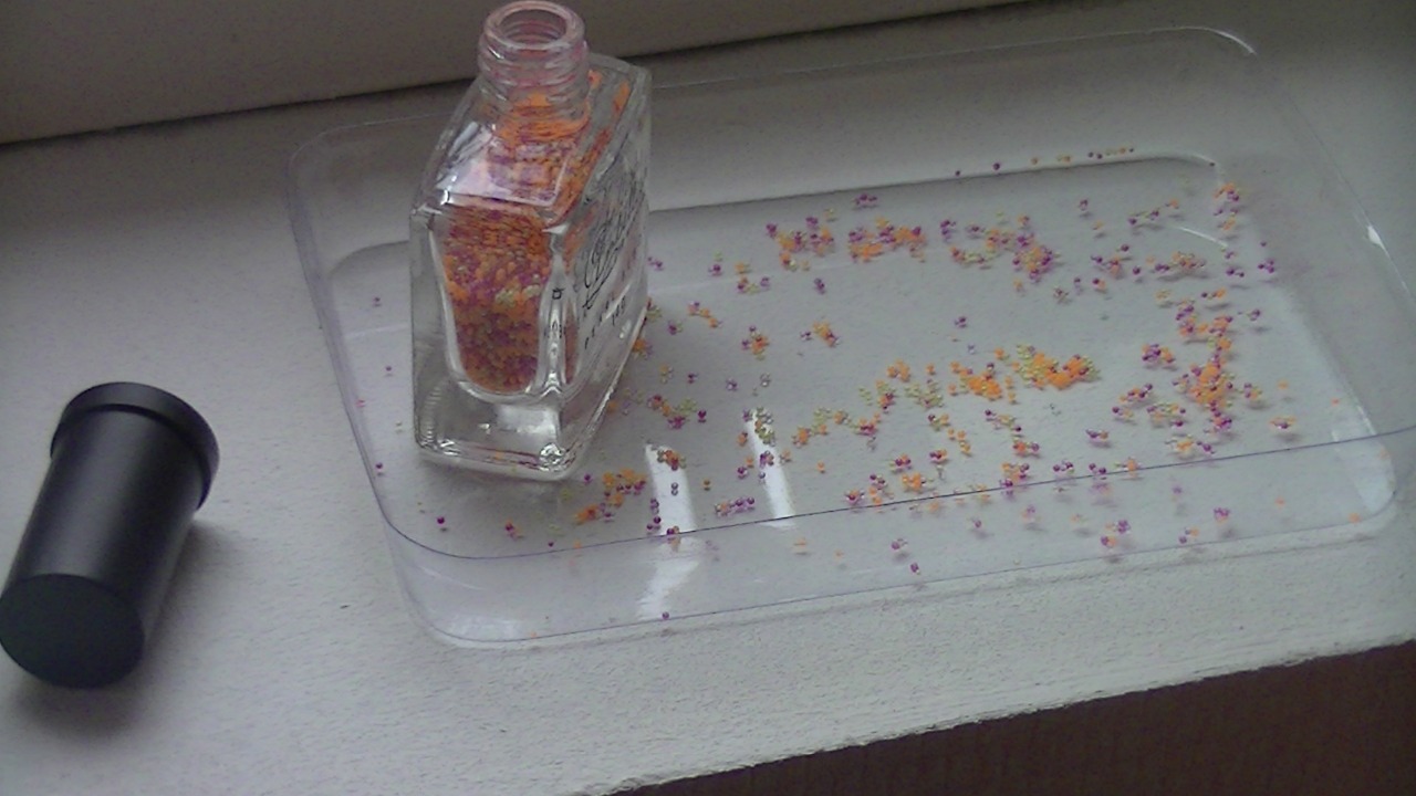 betekend dat er van die pareltjes bij zitten die blijven kleven aan de lak en dat moet een gaaf effect geven!